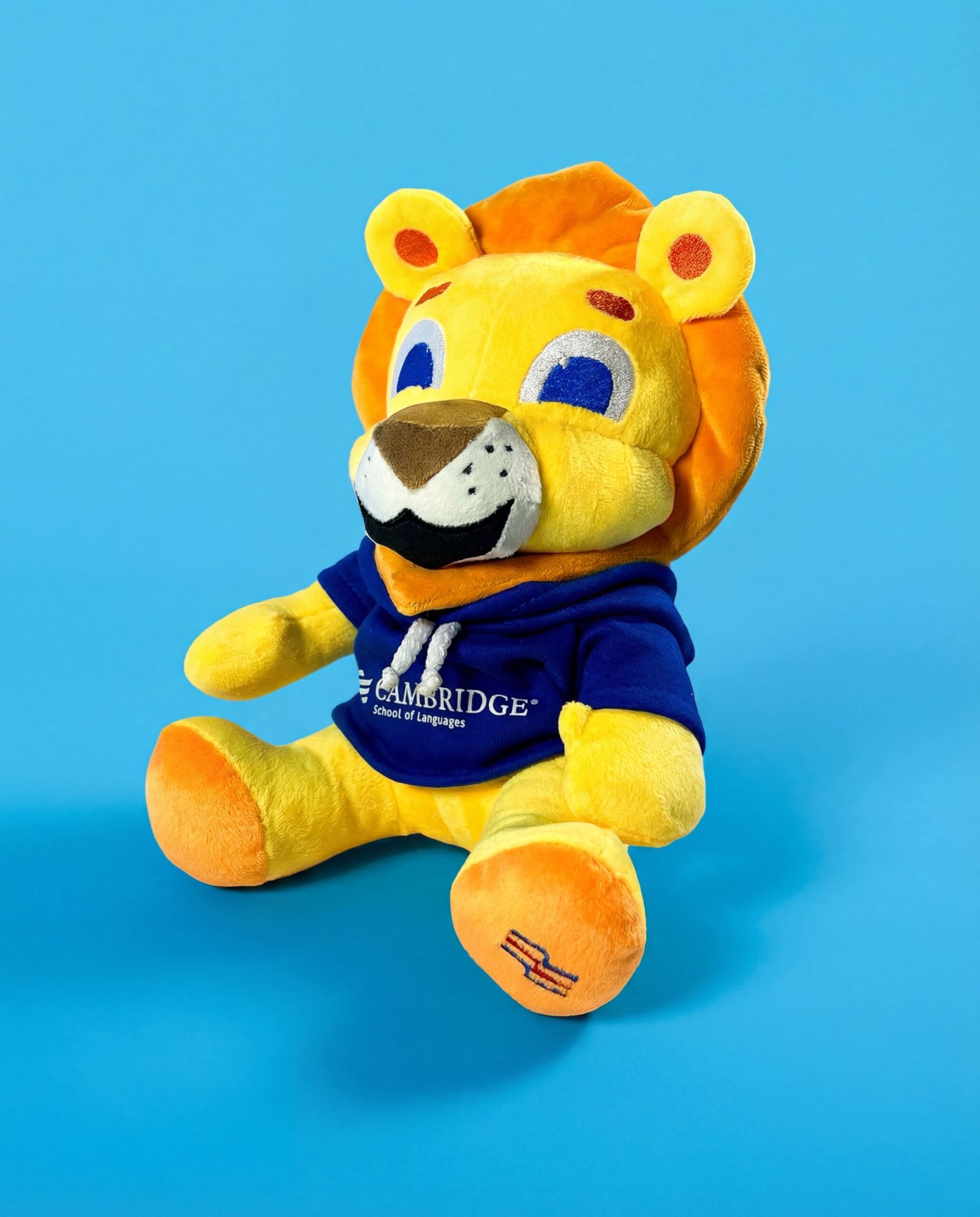 Mascota oficial Cambridge en versión peluche con hoodie institucional. Ideal para niños del programa Kids o como recuerdo especial de la academia. Suave, divertida y representativa de la marca.